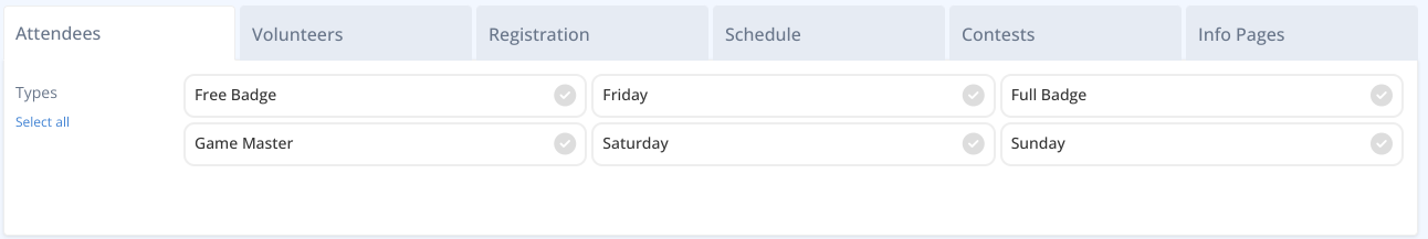 When choosing to copy a previous convention you will see a tabbed layout that details all the various elements that made up that convention. By default nothing is selected, but you can use the “Select All” toggles, or click individual elements, to select what it is you’re cloning.